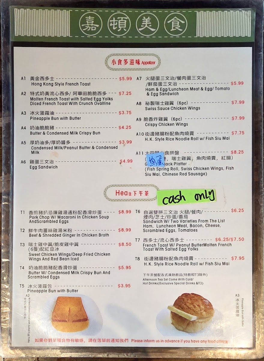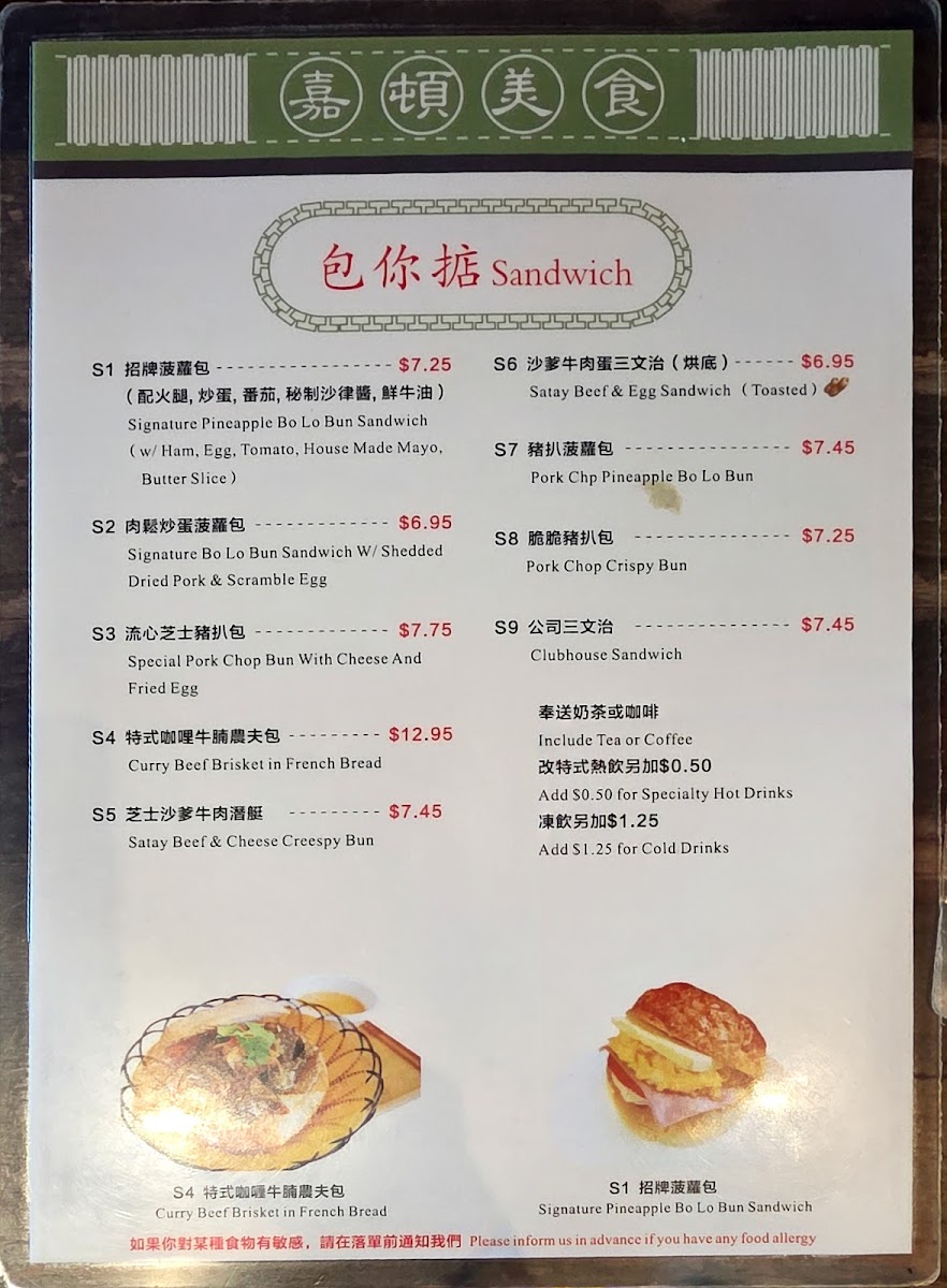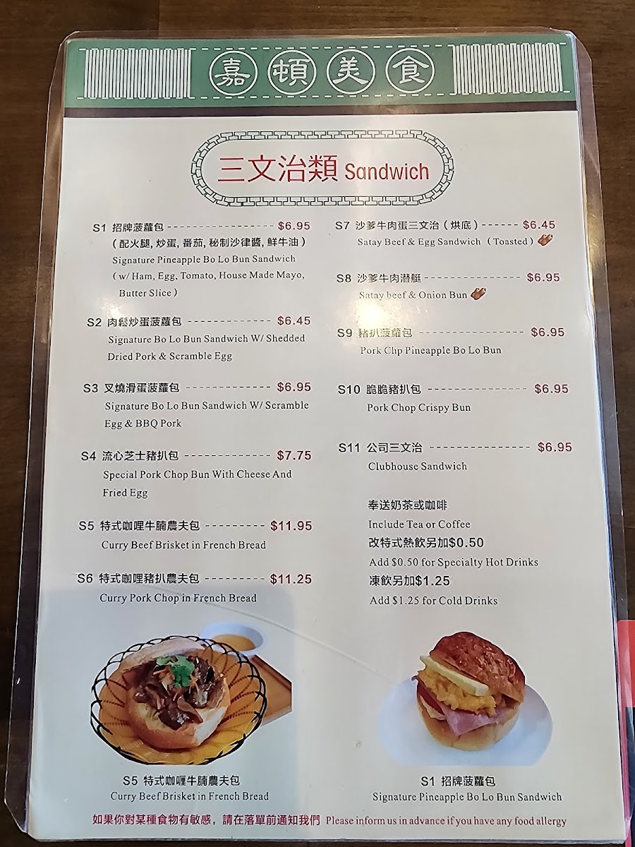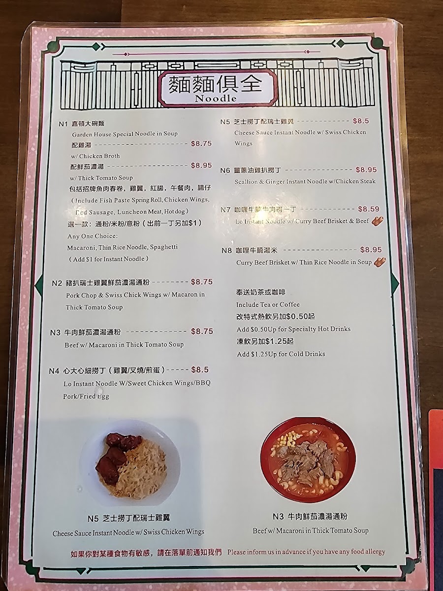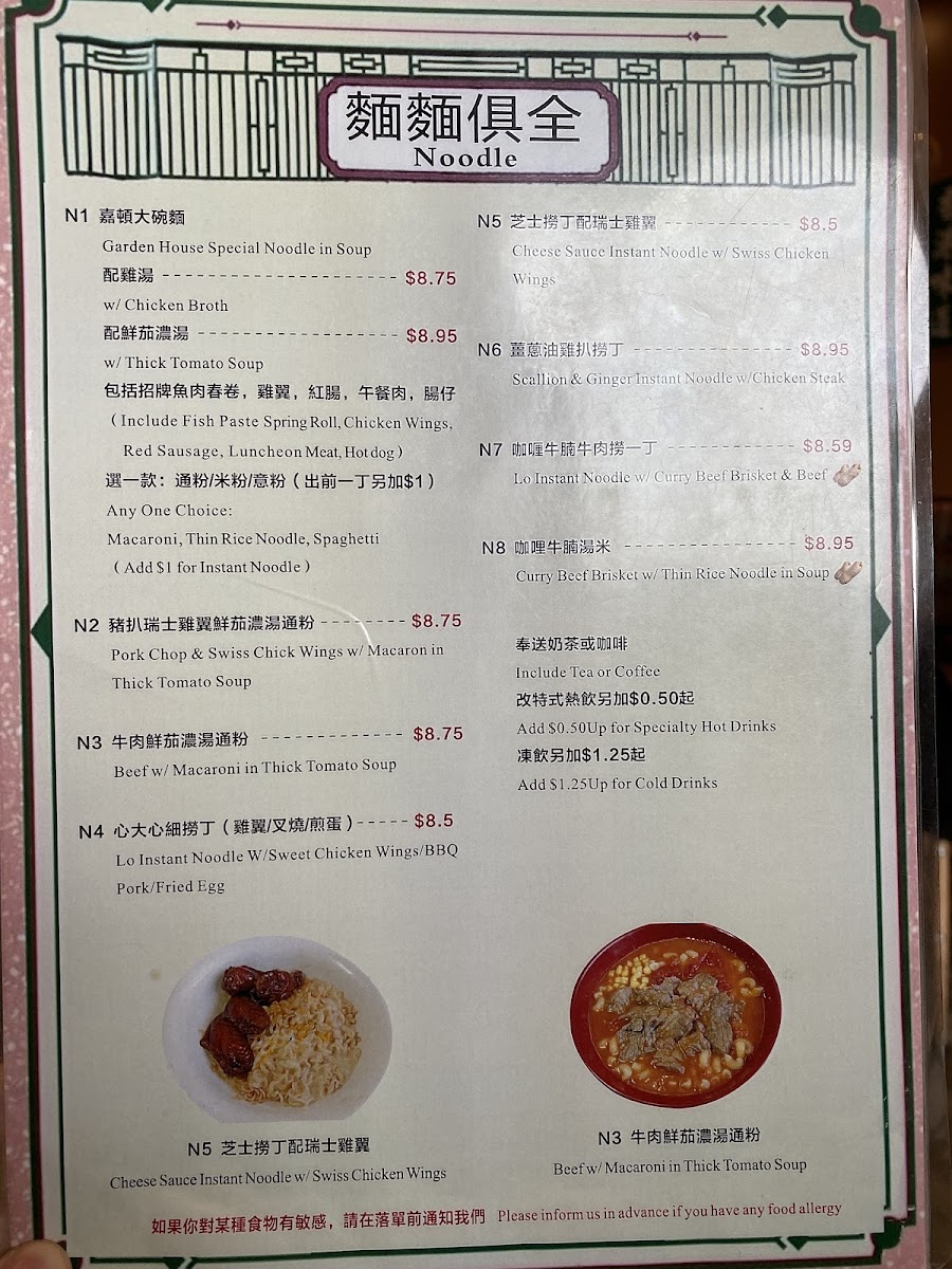 Garden Hong Kong Cafe 嘉頓茶餐廳 Menu